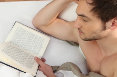 Young man reading in bed